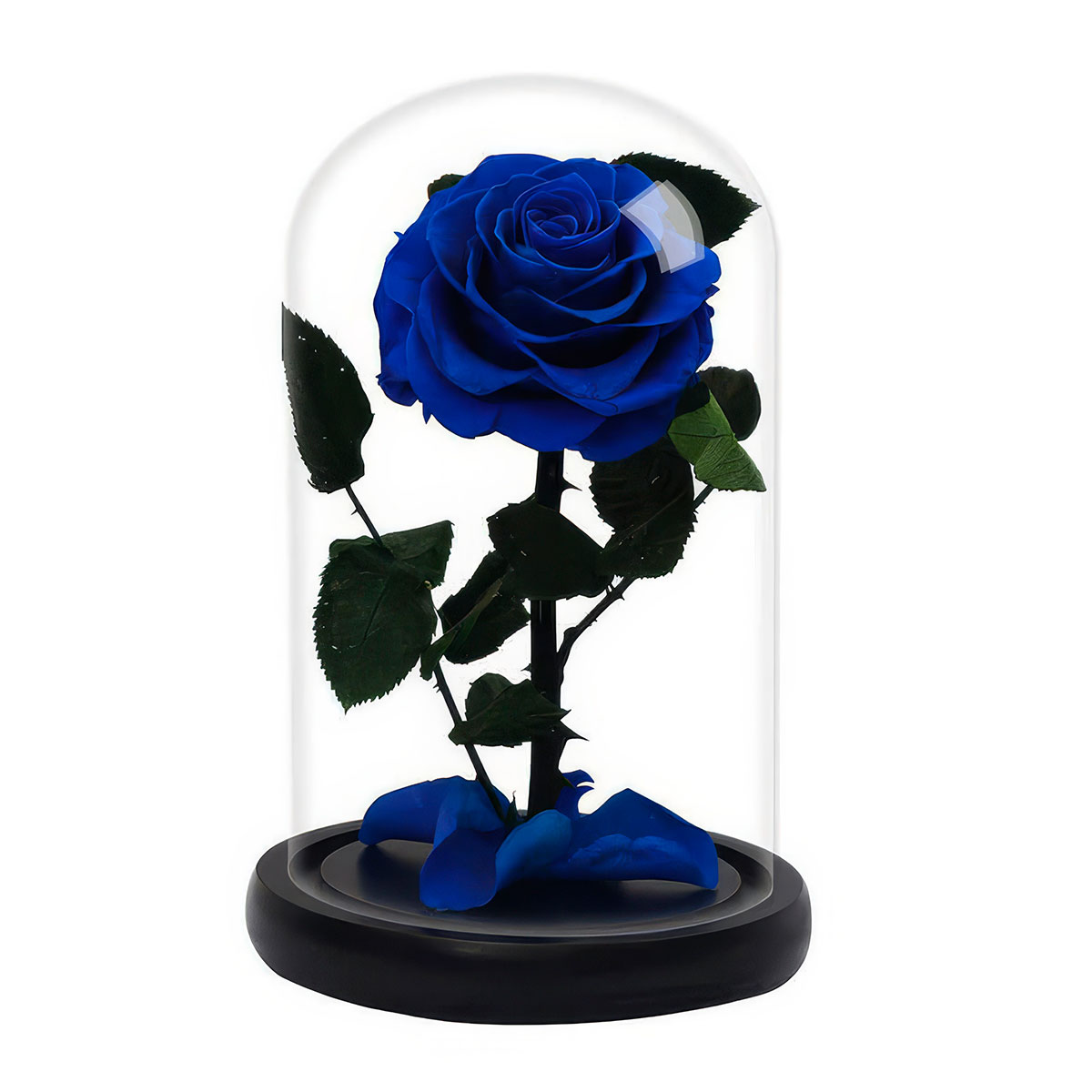Стабилизированная вечная роза в колбе синяя.