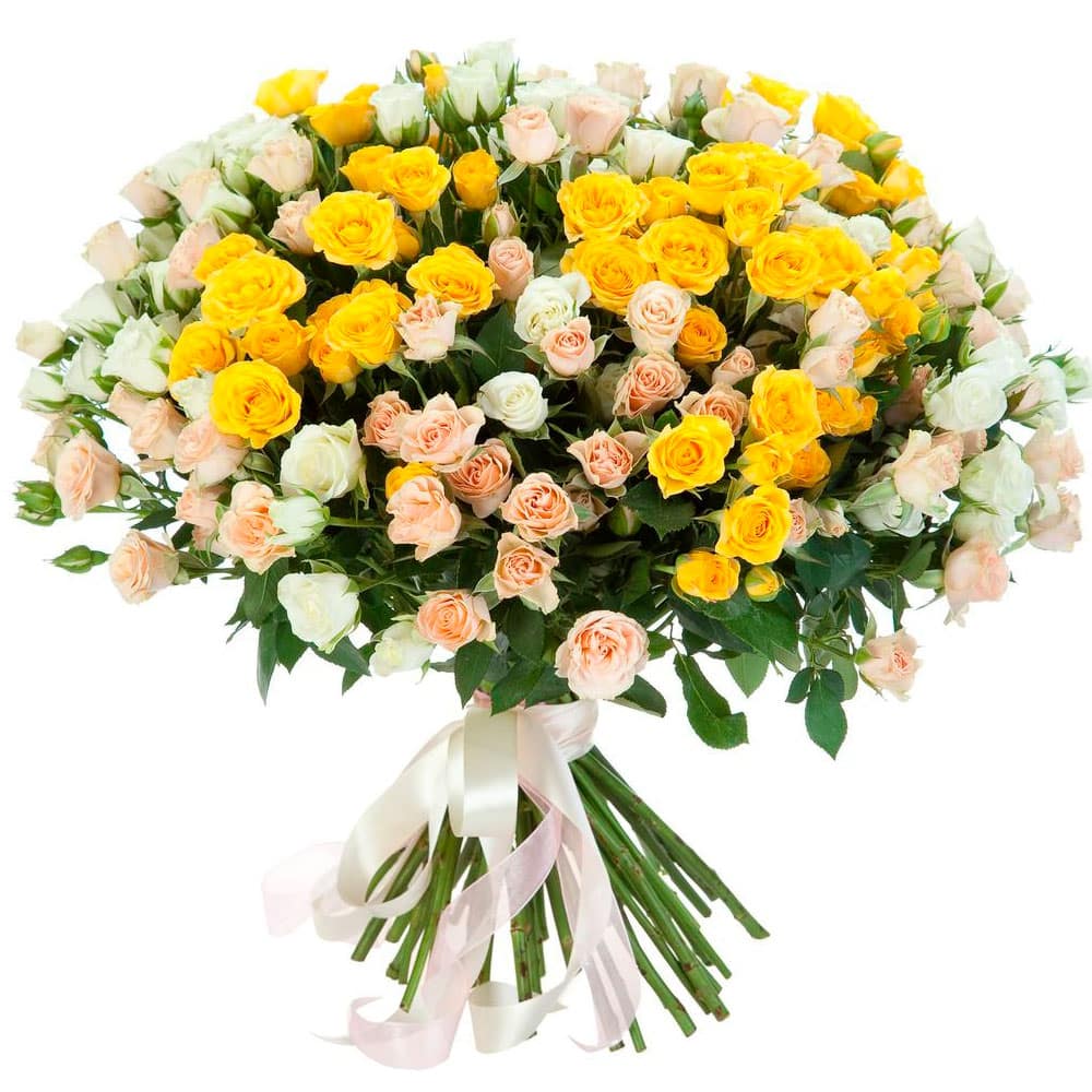 Розы Кустовые микс 2 с доставкой по г Кирс: вы можете купить букет в гипермаркете цветов «Флормания» по цене за 320 руб.