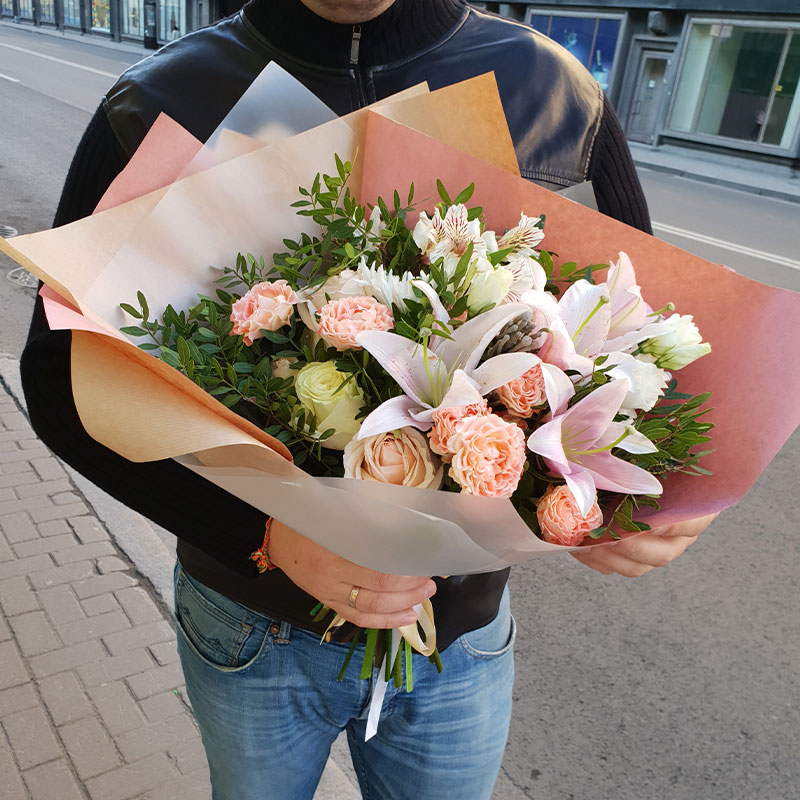 - Сборка букета профессиональными флористами