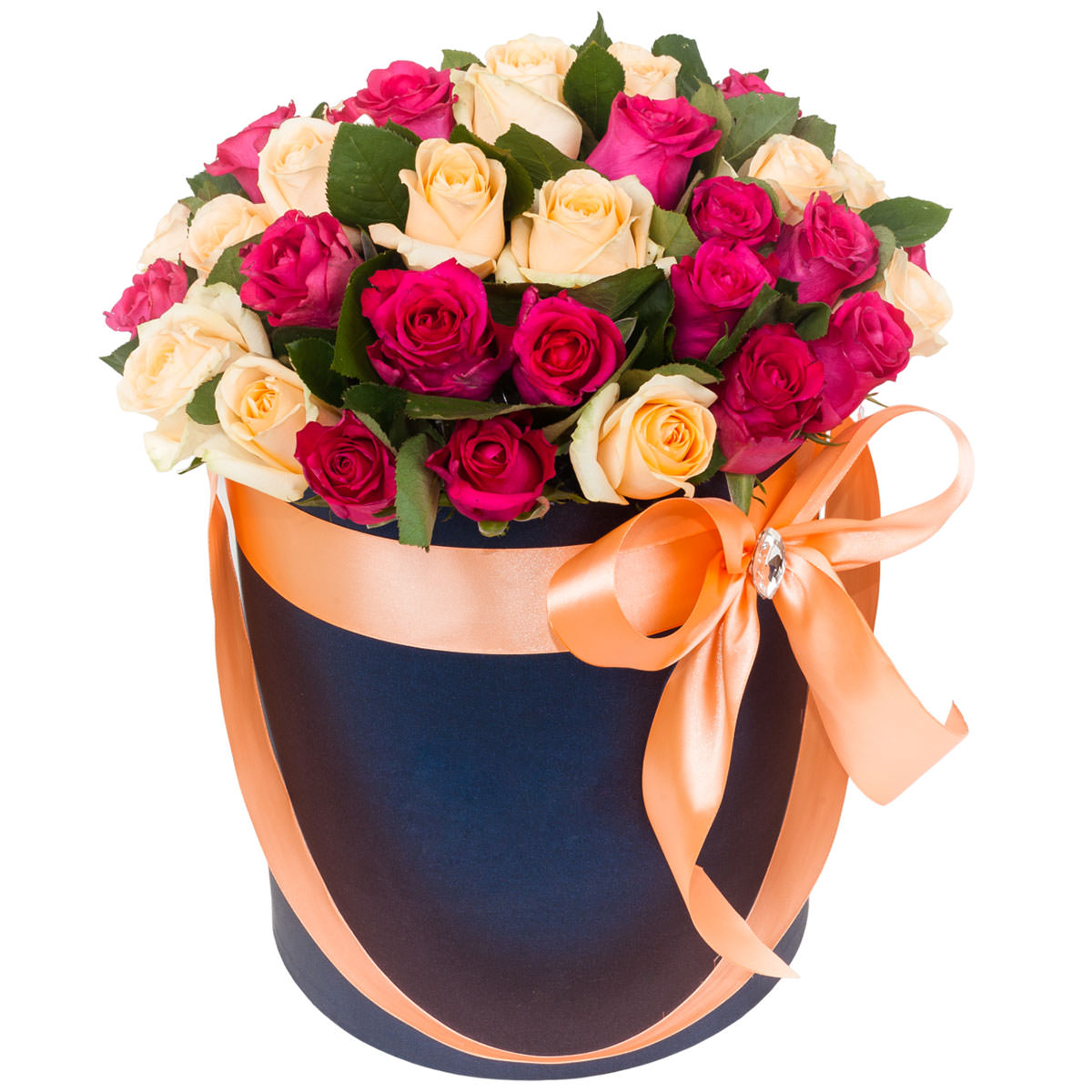 Цветы в коробке «Нежная фантазия» с доставкой по г Кирс: вы можете заказать букет в супермаркете цветов «Флормания» по цене от 3190 руб.