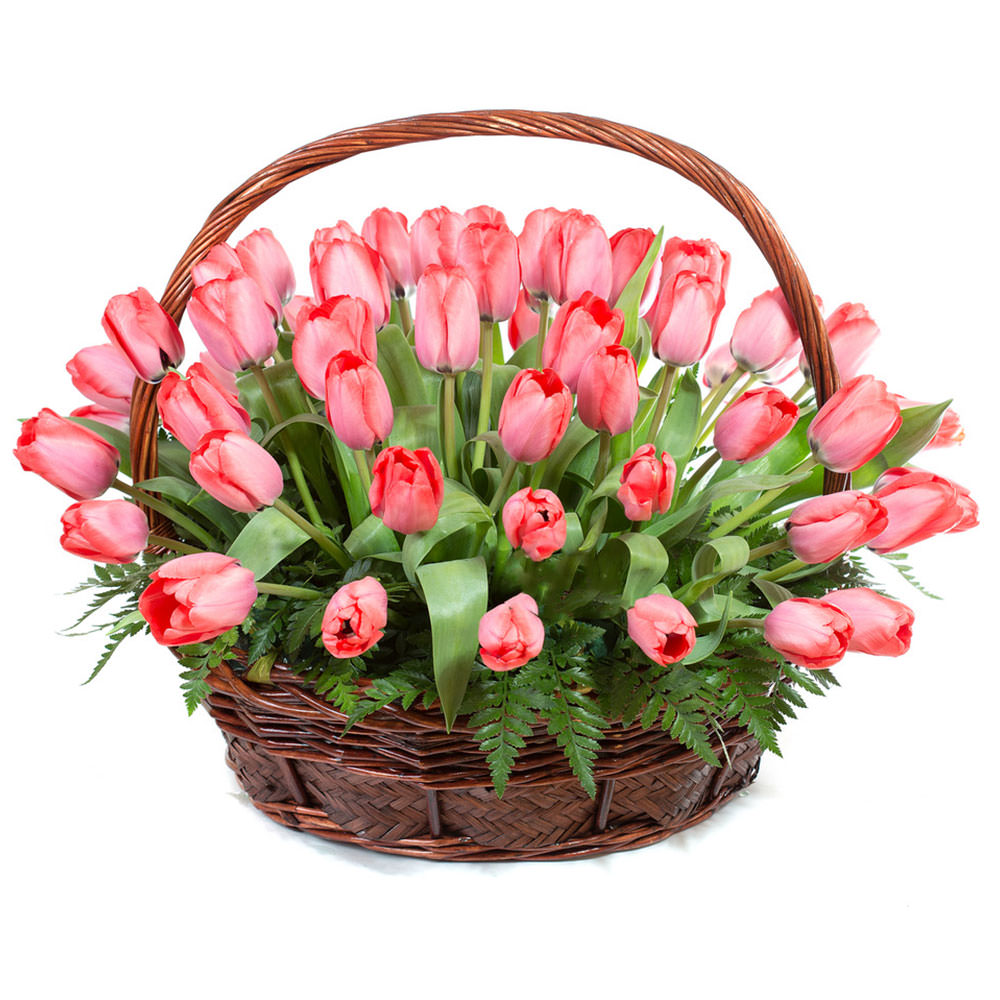 Цветы в корзинке «Розовые тюльпаны» с доставкой по г Кирс: вы можете купить букет в цветочном супермаркете «Флормания» по цене от 3490 руб.